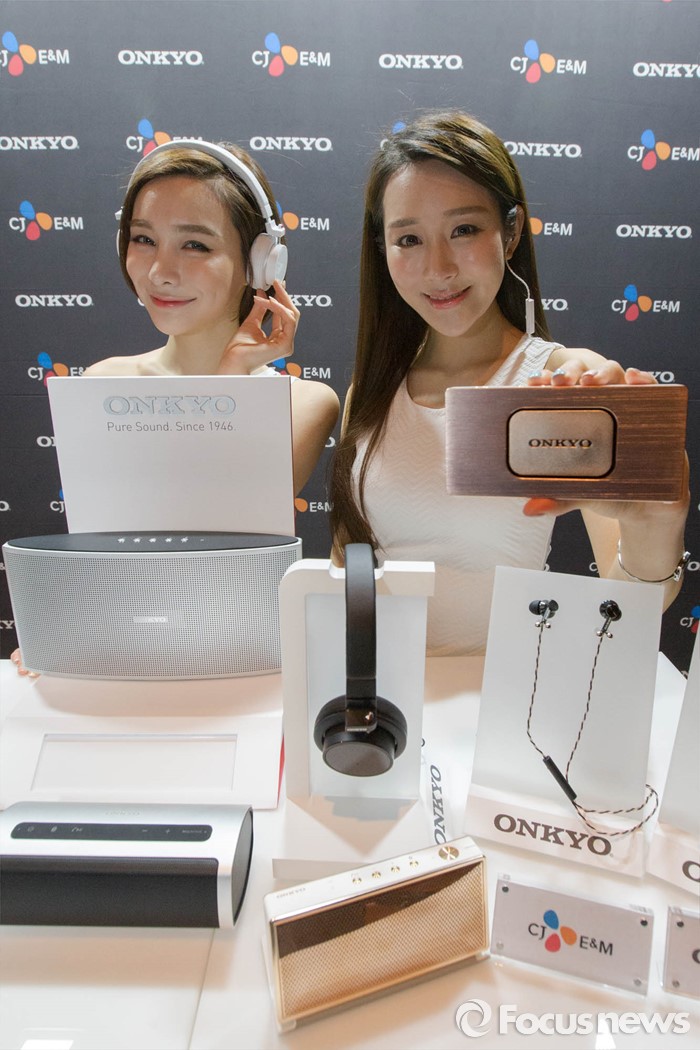 (서울=포커스뉴스) 14일 오전 서울 마포구 상암동 CJ E&M에서 열린 프리미엄 사운드 브랜드 '온쿄(Onkyo)' 기자간담회에서 모델들이 출시 제품을 선보이고 있다. 온쿄(Onkyo)는 CJ E&M 음악사업부문과 깁슨 이노베이션스가 손잡은 프리미엄 사운드 브랜드이며 프리미엄 스피커, 헤드폰, 이어폰 등 제품 15종을 선보일 예정이다.