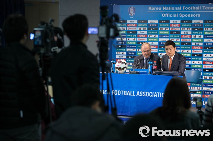(서울=포커스뉴스) 울리 슈틸리케 A대표팀 감독이 14일 오전 종로구 축구회관에서 축구대표팀 3월 소집 명단 발표 기자회견을 하고 있다.