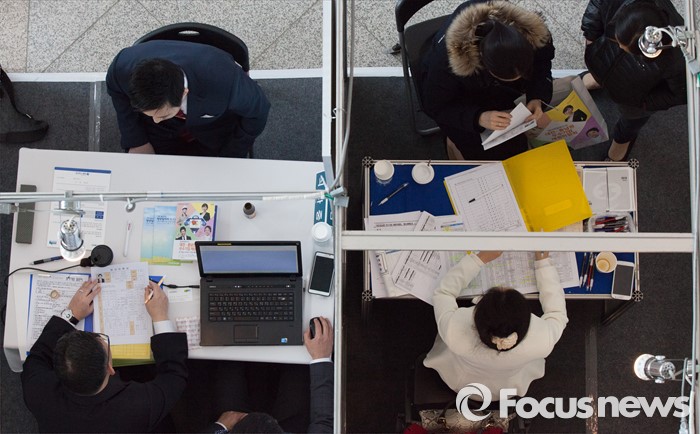 (대전=포커스뉴스) 14일 오전 대전시청에서 열린 청년희망로드쇼 대전·충남권 우수기업 채용박람회에서 구직자가 면접을 보고 있다.