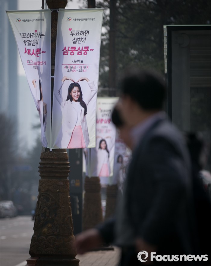 (서울=포커스뉴스) 20대 총선을 30일 앞둔 14일 오전 서울 여의도 국회 인근 가로등에 '아름다운 선거 홍보대사'인 그룹 AOA의 설현을 모델로 제작된 서울시선거관리위원회 현수기가 게시되어 있다.