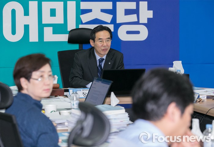 (서울=포커스뉴스) 20대 총선을 30일 앞둔 14일 오후 서울 여의도 더불어민주당사에서 열린 청년 비례대표 후보 면접에 참석한 홍창선 공천관리위원장 등 위원들이 후보들의 발언을 듣고 있다.