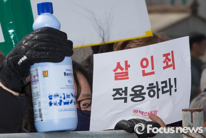(평택=포커스뉴스) 학대와 무관심 속에 살해당한 신원영 군의 계모 김모 씨와 친부 신모 씨가 14일 오후 경기도 평택시 포승읍 자택에 도착, 기다리던 시민단체 회원들이 피켓과 락스통을 들고 있다.