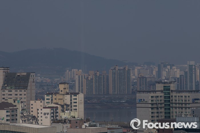 (서울=포커스뉴스) 서울 한 낮 기온이 11도까지 상승한 14일 오후 서울 강남구에서 바라본 도심에 보통 수준의 미세먼지가 끼어 있다.