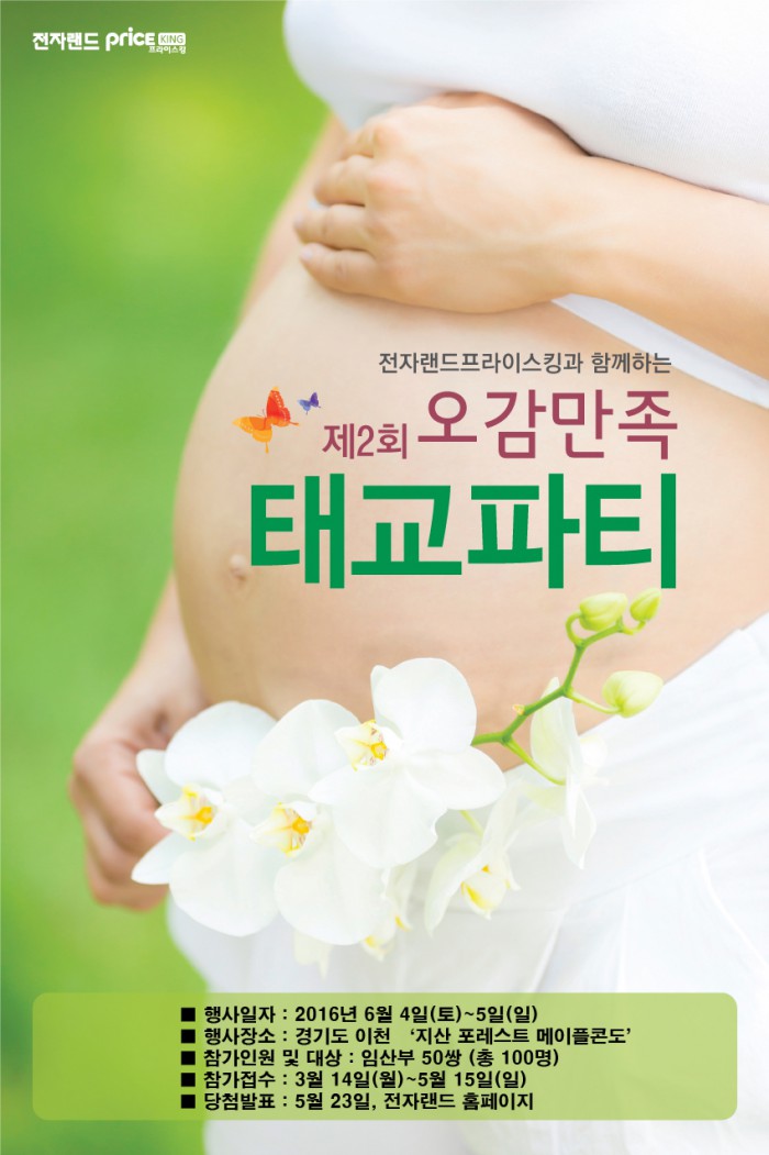 (서울=포커스뉴스) 전자랜드프라이스킹(이하 전자랜드)가 '제 2회 오감만족 태교파티'에 참가할 50쌍의 임산부 부부를 온라인 홈페이지를 통해 14일부터 모집한다.