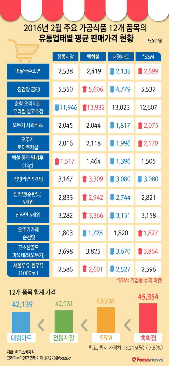 | △ [그래픽] 주요 가공식품 유통업태별 평균 판매가격 현황 |