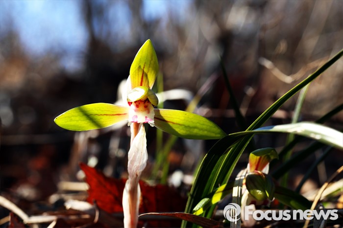 (완도=포커스뉴스) 꽃샘추위가 물러가고 봄기운이 다가온 15일 오전 전남 완도의 양지바른 야산에 자생하는 춘란이 꽃망울을 터트리고 있다. 꽃이 일찍 피기 때문에 보춘화라고도 하며,완도에서는 '꽁지발'이라고 부른다. <사진제공=이준택교수>