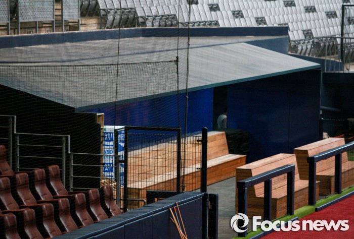 선수들의 안전을 고려해 경기가 진행되는 동안 감독과 코치, 선수들이 대기하는 더그아웃에 보호천장을 설치했다.