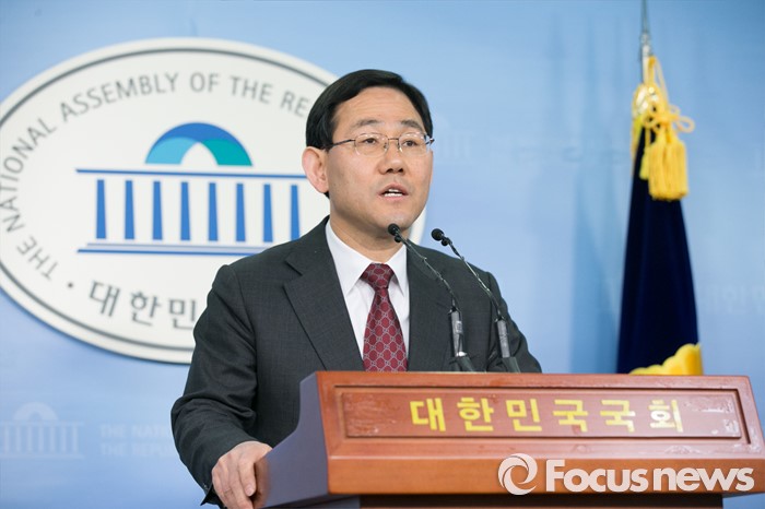(서울=포커스뉴스) 20대 총선 공천에서 배제된주호영 새누리당 의원이 15일 오전 서울 여의도 국회 정론관에서 기자회견을 하고 있다.
