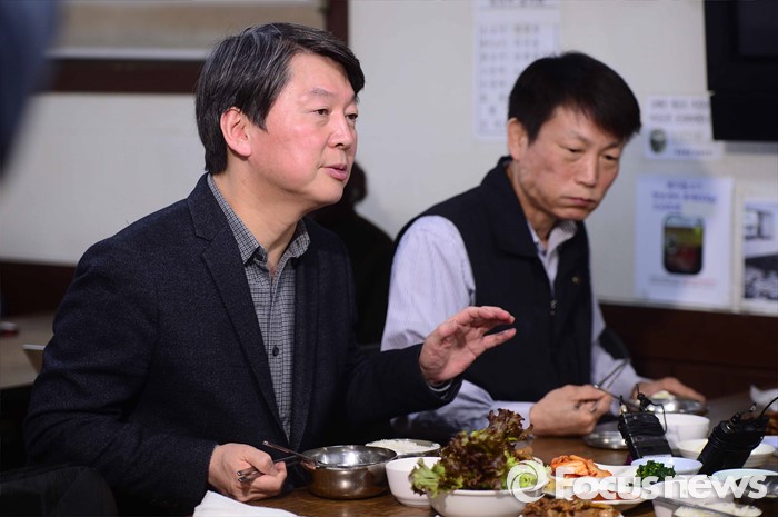 (서울=포커스뉴스) 15일 오후 서울 마포구 연남동 한 기사식당에서 안철수 국민의당 상임공동대표가 택시기사와 간담회를 갖고 있다.