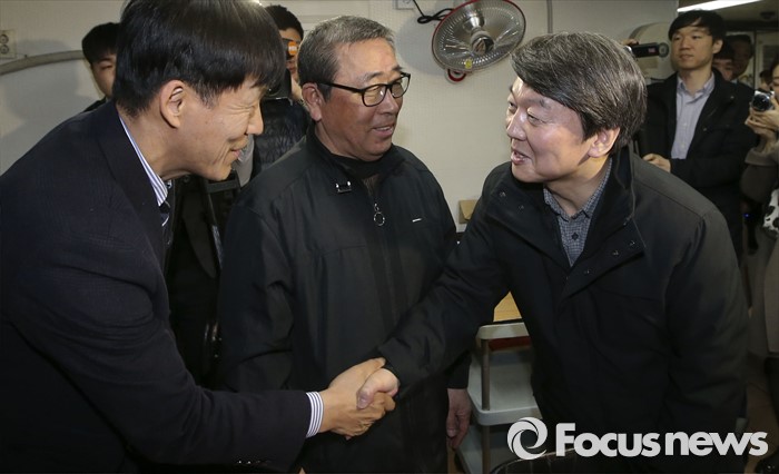 (서울=포커스뉴스) 안철수 국민의당 상임공동대표가 15일 오후 서울 마포구 연남동 한 식당에서 택시기사들과 악수를 나누고 있다.
