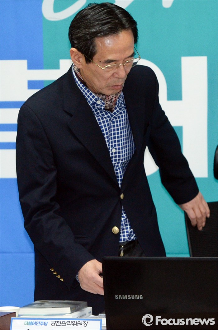 (서울=포커스뉴스) 홍창선 더불어민주당 공천관리위원장이 15일 오전 서울 여의도 당사에서 20대 총선 비례대표 후보 면접을 심사하기 위해 입장하고 있다.
