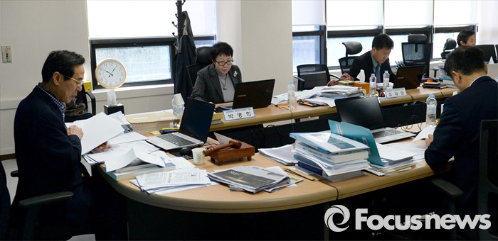 (서울=포커스뉴스) 홍창선 더불어민주당 공천관리위원장을 비롯한 위원들이 15일 오전 서울 여의도 당사에서 20대 총선 비례대표 후보 면접 심사를 하고 있다.