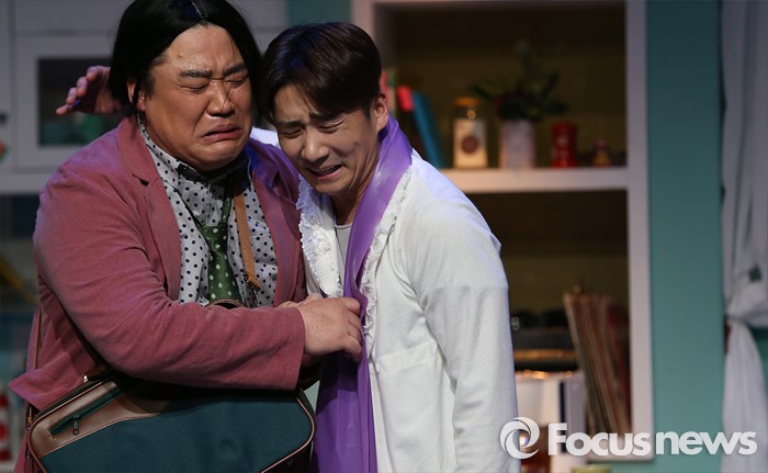 (서울=포커스뉴스) 15일 오후 서울 강남구 코엑스아트센터에서 열린 연극 '서툰사람들' 프레스콜에 참석한 배우 김철무와 이정수가 주요 장면을 시연하고 있다.