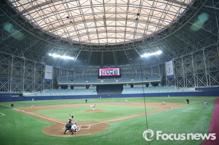 (서울=포커스뉴스) 15일 최초의 돔구장인 서울 고척스카이돔에서 2016 프로야구 시범경기 SK-넥센전이 열리고 있다.