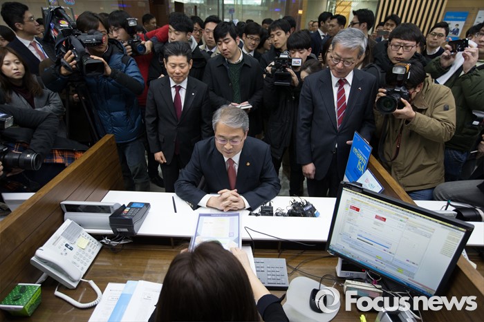 (서울=포커스뉴스) 15일 오후 서울 여의도 신한금융투자 본사 영업점에서 임종룡(가운데) 금융위원장이 개인종합자산관리계좌(ISA) 가입을 위해 직원의 설명을 듣고 있다.