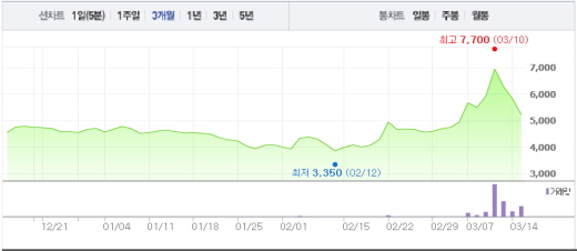 디에스티 로봇은 이날 장 초반 소폭 상승세를 이어가지 못하고 하락 마감했다. 제조업용 로봇을 생산하고 있는 디에스티 로봇은 전일 대비 10.45%(610원) 하락한 5230원에 거래를 마쳤다. 주가는 이날 오전까지 견조한 모습을 보였지만 대국이 시작한 오후 1시 이후 급격히 떨어졌다.