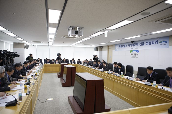 (세종=포커스뉴스) 김경환 국토교통부 1차관이 15일 오후 세종시 정부세종청사 국토부 중회의실에서 사이버안전 긴급 점검회의를 주재하고 있다. <사진제공=국토교통부>