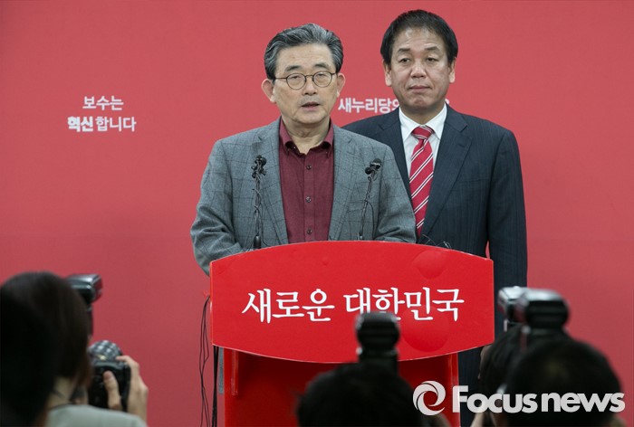 (서울=포커스뉴스) 이한구(왼쪽) 새누리당 공천관리위원장과 박종희 제2사무부총장이 15일 오후 서울 여의도 당사에서 20대 총선 3차 경선결과를 발표를 하고 있다. 이날 새누리당 공천관리위원회는 서울 종로구 선거구에 오세훈 전 서울시장이 경선 후보로 확정됐다고 전했다.