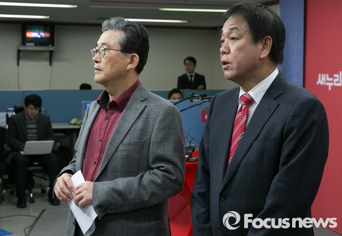 (서울=포커스뉴스) 이한구(왼쪽) 새누리당 공천관리위원장과 박종희 제2사무부총장이 15일 오후 서울 여의도 당사에서 20대 총선 3차 경선결과를 발표를 마친 뒤 취재진 질문에 답하고 있다. 이날 새누리당 공천관리위원회는 서울 종로구 선거구에 오세훈 전 서울시장이 경선 후보로 확정됐다고 전했다.