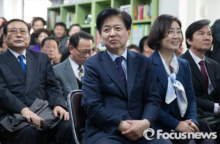 (서울=포커스뉴스) 노웅래 더불어민주당 의원(중앙)이 15일 오후 서울 마포구 백범로에서 내·외빈들과 함께 선거사무소 개소식을 하고 있다.
