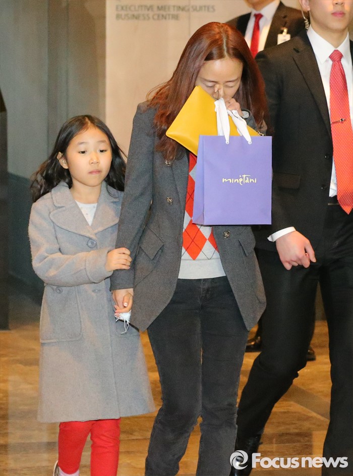 (서울=포커스뉴스) 15일 오후 서울 광화문 포시즌스 호텔에서 열린 구글 딥마인드 챌린지 매치 제5국에서 바둑기사 이세돌 9단의 딸 혜림(왼쪽) 양과 아내 김현진 씨가 이 9단의 패배가 전해진 뒤 대국장을 나서고 있다.