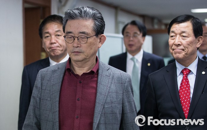| △ 공천 발표 기자회견장 들어서는 이한구 |