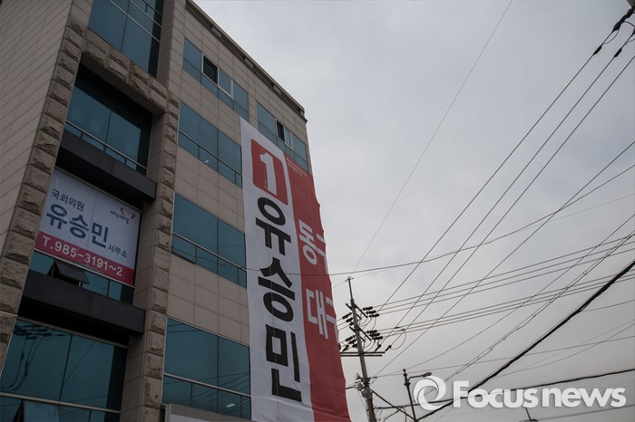 (대구=포커스뉴스) 새누리당이 유승민(대구 동구을) 의원에 대한 공천 배제안을 놓고 고민하고 있는 16일 오전 대구 동구 한 건물에 유 의원의 선거사무소가 마련되어 있다.