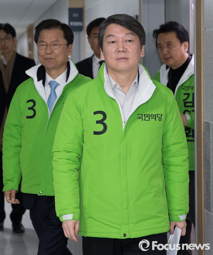 | △ 최고위원회의 참석하는 안 대표와 천 대표 |
