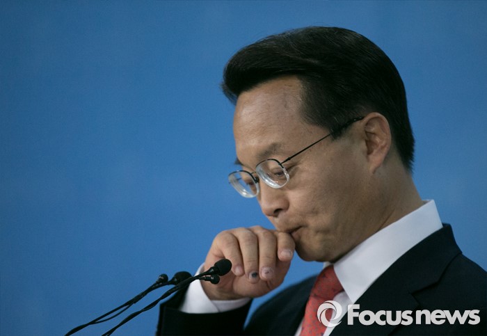 (서울=포커스뉴스) 공천 배제(컷오프)된 조해진 새누리당 의원이 16일 오전 서울 여의도 국회 정론관에서 공천관리위원회의 결정에 반발하는 내용의 기자회견에 앞서 입술을 만지고 있다.