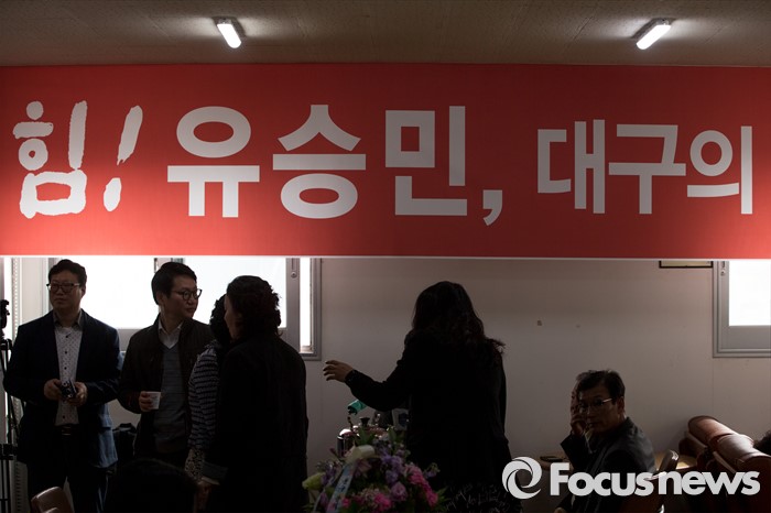 (대구=포커스뉴스) 새누리당이 유승민(대구 동구을) 의원에 대한 공천 배제안을 놓고 고민하고 있는 16일 오전 대구 동구 유 의원 선거사무소에 취재진 및 지지자들이 모여 있다.