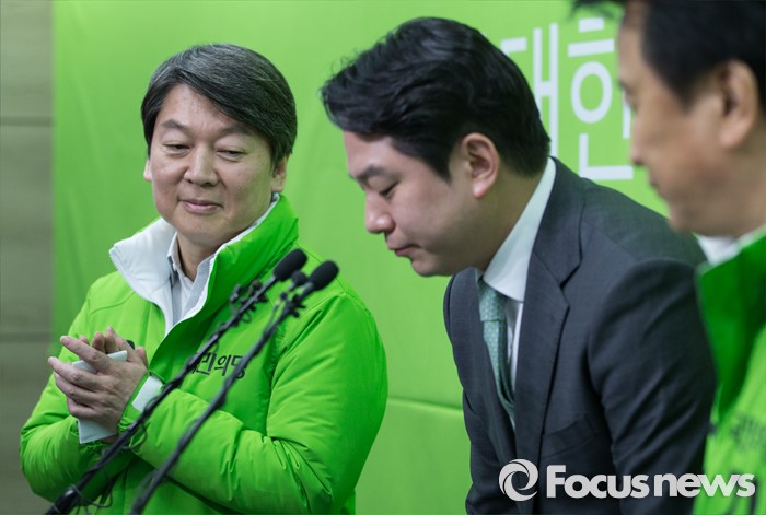 (서울=포커스뉴스) 더불어민주당을 탈당한 정호준 의원(가운데)이 16일 오후 서울 마포구 국민의당 당사에서 국민의당 입당 소감을 밝힌 후 인사하고 있다.