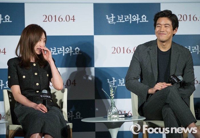 (서울=포커스뉴스) 16일 오전 서울 동대문 메가박스에서 열린 영화 '날,보러와요(감독 이철하)' 제작보고회에 참석한 배우 강예원과 배우 이상윤이 영화를 소개하며 웃고 있다. 영화 '날,보러와요'는 이유도 모른채 정신병원에 납치 강금된 여자(강예원)와 시사프로 소재를 위해 그녀의 사연에 관심을 갖게 된 PD(이상윤)가 밝혀낸 믿을 수 없는 진실에 대한 충격실화 스릴러다.