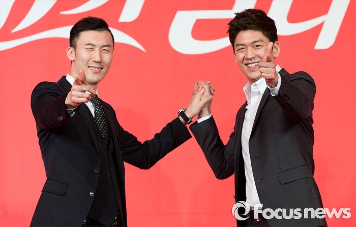 (서울=포커스뉴스) 16일 오전 서울 중구 더플라자호텔 그랜드볼룸에서 제21회 코카콜라 체육대상 시상식에 참석한 이용대(오른쪽)와 유연성이 우수단체상 수상 세리머니를 하고 있다.
