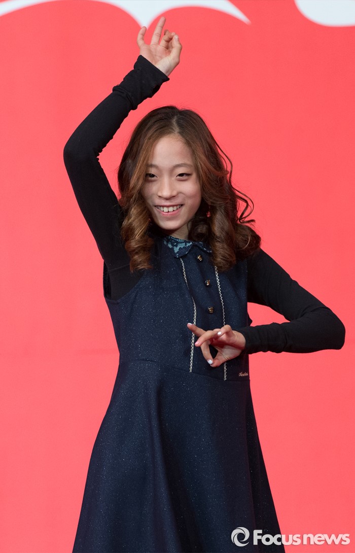 (서울=포커스뉴스) 16일 오전 서울 중구 더플라자호텔 그랜드볼룸에서 제21회 코카콜라 체육대상 시상식에 참석한 피겨선수 유영이 신인상 수상 세리머니를 하고 있다.
