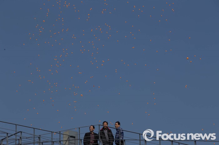 (파주=포커스뉴스) 16일 오후 경기도 파주시 임진각 망배단에서 개성공단 입주기업, 영업기업, 협력기업 등 대표를 비롯한 임직원과 가족들이 공단재가동 및 실질보상을 촉구하며 풍선을 날리고 있다.