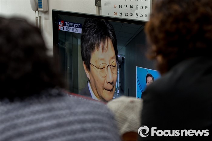 (대구=포커스뉴스) 새누리당이 유승민(대구 동구을) 의원에 대한 공천 배제안을 놓고 고민하고 있는 16일 오후 대구 동구 유 의원 선거사무소에 모인 지지자들이 뉴스를 시청 하고 있다.