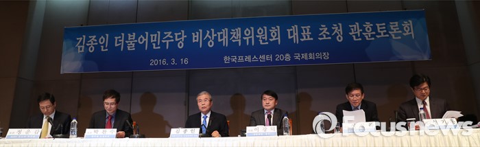 (서울=포커스뉴스) 김종인 더불어민주당 비상대책위원회 대표가 16일 관훈클럽 초청 토론회에 참석해 20대 총선과 관련해 현정부와 여당을 비판하며 정치 현안에 대한 자신의 견해를 밝혔다.