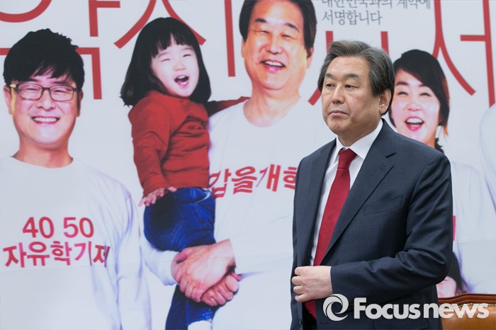 (서울=포커스뉴스) 김무성 새누리당 대표가 16일 오후 서울 여의도 국회에서 긴급 기자회견을 마친 뒤, 밖으로 나가고 있다. 김 대표는 이 자리에서 "오전에 열린 최고위원회의에서 단수 추천지역 7곳과 우선 추천지역 1곳을 공천관리위원회에 보류 요청했다"고 밝혔다.