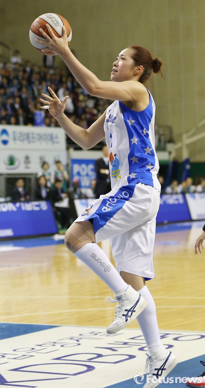 (춘천=포커스뉴스) 춘천호반체육관에서 열린 2015~2016 여자프로농구 우리은행-KEB하나 챔피언결정전에서 우리은행 양지희가 레이업슛을 하고 있다..