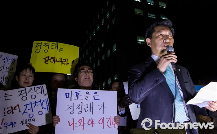 (서울=포커스뉴스) 20대 총선에서 공천배제된 정청래 더불어민주당 의원이 16일 오후 서울 여의도 당사 앞에서 가진 기자회견에서 자신의 거취를 밝히고 있다.