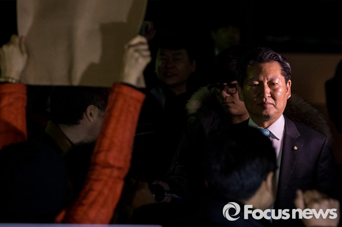 | △ 기자회견장 향하는 정청래 |
