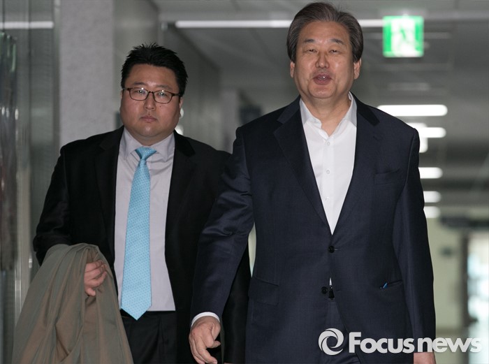 (서울=포커스뉴스) 김무성(오른쪽) 새누리당 대표가 17일 오전 서울 여의도 국회 의원회관 의원실로 출근하고 있다.