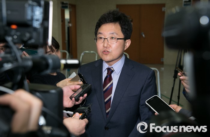 (서울=포커스뉴스) 김용태 새누리당 서울시당위원장이 17일 오전 서울 여의도 국회 정론관에서 당 공천에 대한 입장발표를 마친 뒤 취재진 질문에 답하고 있다.