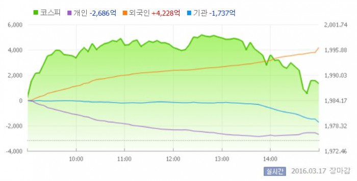 이날 코스피는 1984.69로 장을 시작했다. 이후 지수는 상승폭을 확대하며 올 들어 처음으로 2000선을 넘어섰다. 코스피가 장중 기준 2000선을 넘어선 것은 지난해 12월 24일 이후 처음이다.
