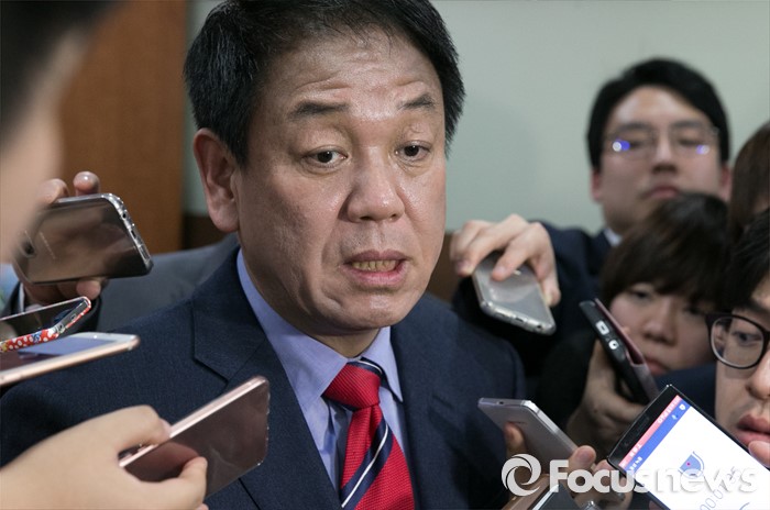 (서울=포커스뉴스) 새누리당 공천관리위원회 외부위원들이 김무성 대표의 사과를 요구하며 회의를 보이콧한 17일 오후 서울 여의도 당사에서 회의를 마친 박종희 제2사무부총장이 취재진 질문에 답하고 있다.
