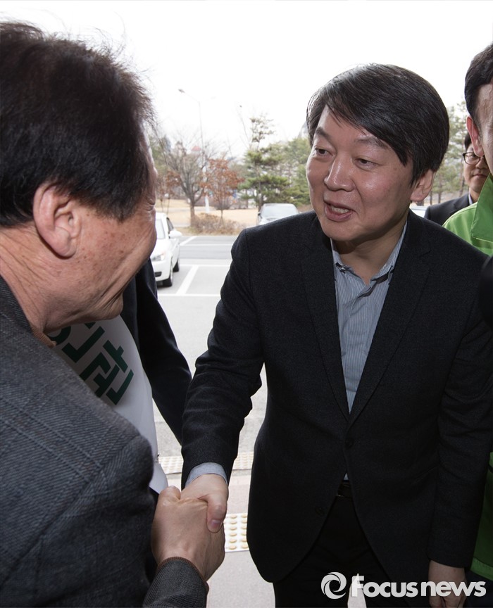 (청주=포커스뉴스) 17일 오후 충북 청주 흥덕구 리호관광호텔에서 열린 국민의당 충북도당 창당대회에서 안철수 공동대표가 당원들과 악수를 하고 있다.