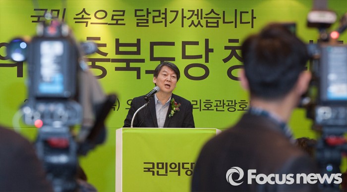 (청주=포커스뉴스) 17일 오후 충북 청주 흥덕구 리호관광호텔에서 열린 국민의당 충북도당 창당대회에서 안철수 공동대표가 격려사를 하고 있다.