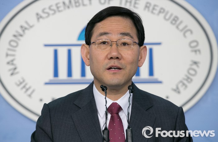 (서울=포커스뉴스) 공천 탈락한 주호영 새누리당 의원이 18일 오전 서울 여의도 국회 정론관에서 최고위원회의 재심 요구를 반려한 이한구 공천관리위원장과 관련 기자회견을 하고 있다.