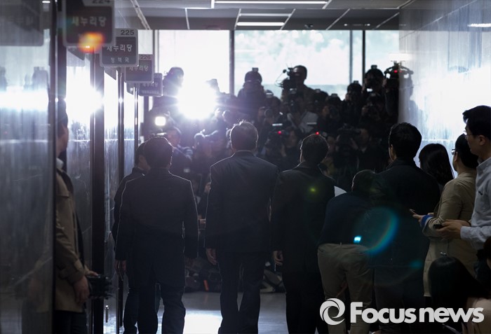 (서울=포커스뉴스) 김무성 새누리당 대표가 18일 오전 서울 여의도 국회에서 비공개 최고위원회의에 참석하고 있다.