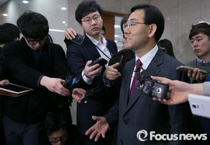 (서울=포커스뉴스) 공천 탈락한 주호영 새누리당 의원이 18일 오전 서울 여의도 국회 정론관에서 최고위원회의 재심 요구를 반려한 이한구 공천관리위원장과 관련 기자회견을 마친 뒤 취재진 질문에 답하고 있다.